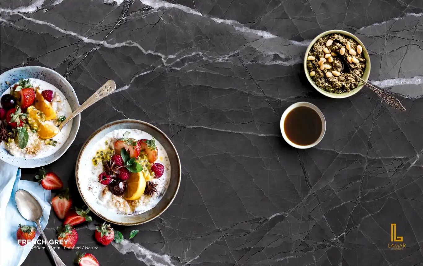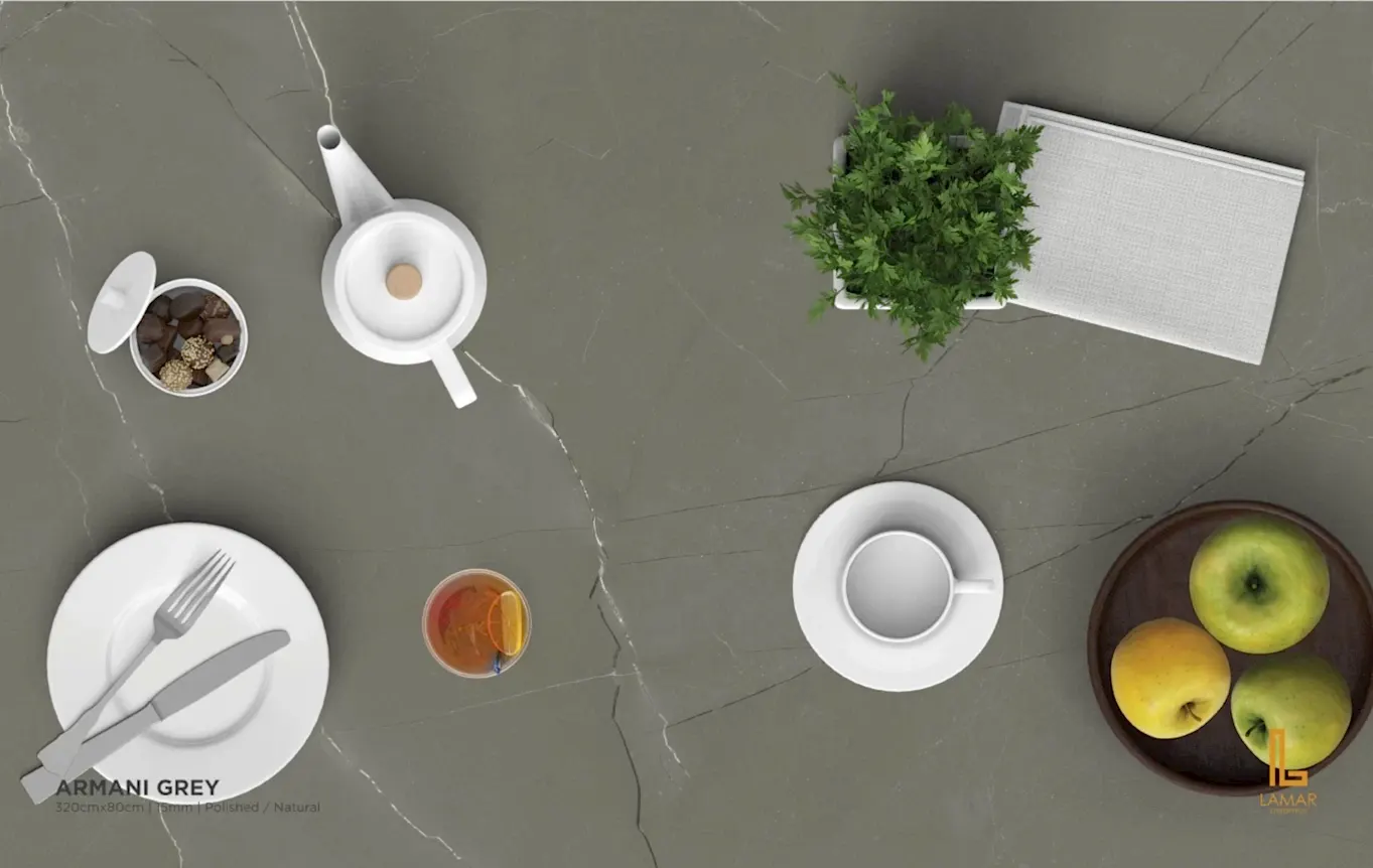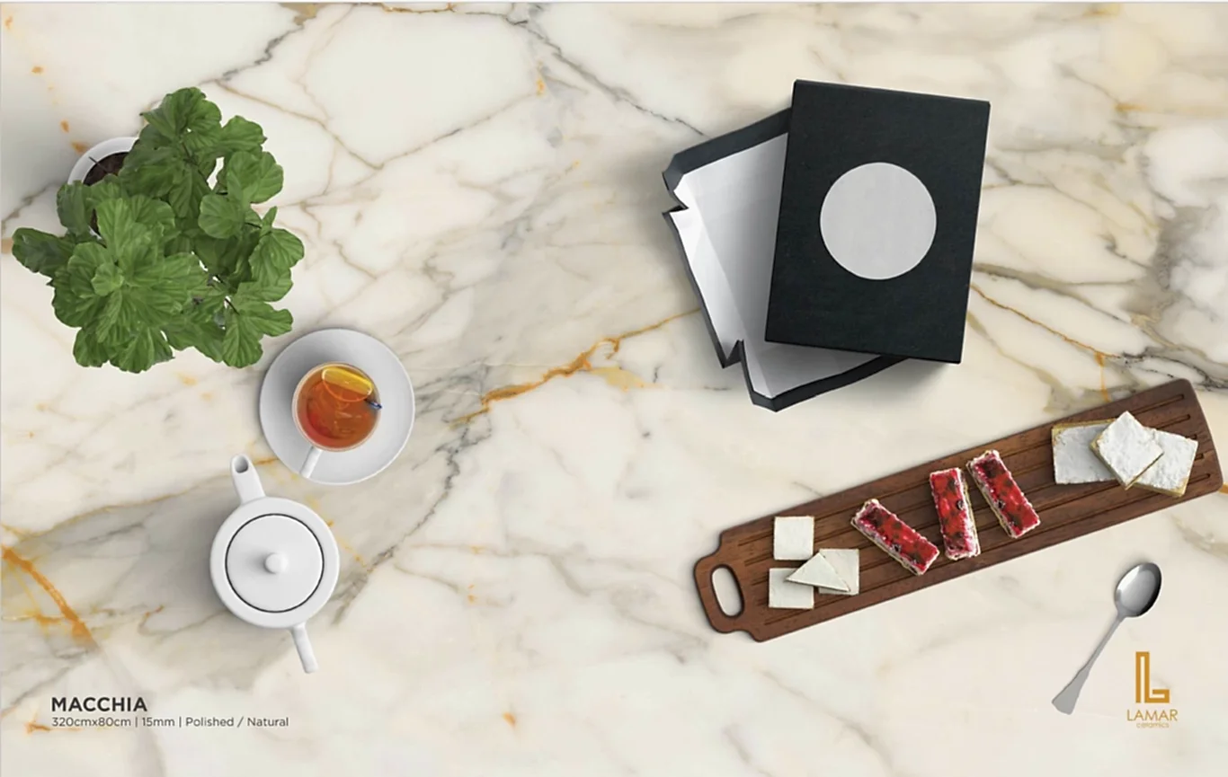 Lamar, genellikle mutfak ve banyo tezgahlarında kullanılan bir porselen yüzey malzemesidir. Yüksek sıcaklıkta işlenmiş doğal malzemelerden üretilir, dayanıklı ve estetik bir görünüme sahiptir. Lamar, leke ve çizilmeye karşı dirençli olmasıyla bilinir.